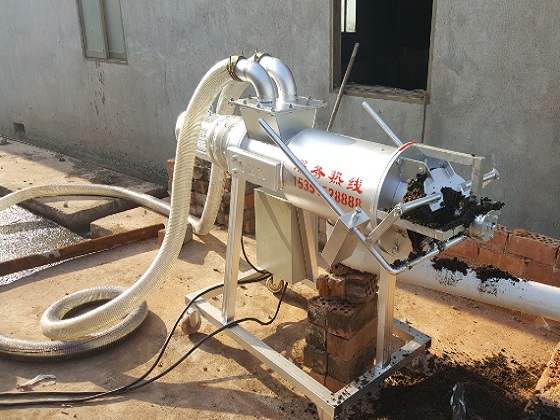 用液下泵將原糞便提高送往牛糞處理機內(nèi),擠壓成型絞龍將糞水慢慢引向人體正前方,另外不斷提升外緣的工作壓力,驅(qū)使原材料中的水份在邊壓帶濾的功效下擠壓網(wǎng)篩,排出排水管道。牛糞處理機的工作中是持續(xù)的,其原材料持續(xù)的提高至人體內(nèi),外緣的工作壓力持續(xù)擴大,當大到一定水平時,就將倒料口頂開,擠壓擠壓成型口,做到擠壓成型進料的目地。假如注入的排泄物水過多也會經(jīng)溢液管排在原化糞池中也具有了拌和的功效,經(jīng)螺旋式擠壓成型過慮分離出來出的污水可立即配送至沉砂池等。以便把握進料的速度水分含量,能夠 調(diào)整服務(wù)器正下方的平衡塊,以做到令人滿意適度的含水量。
